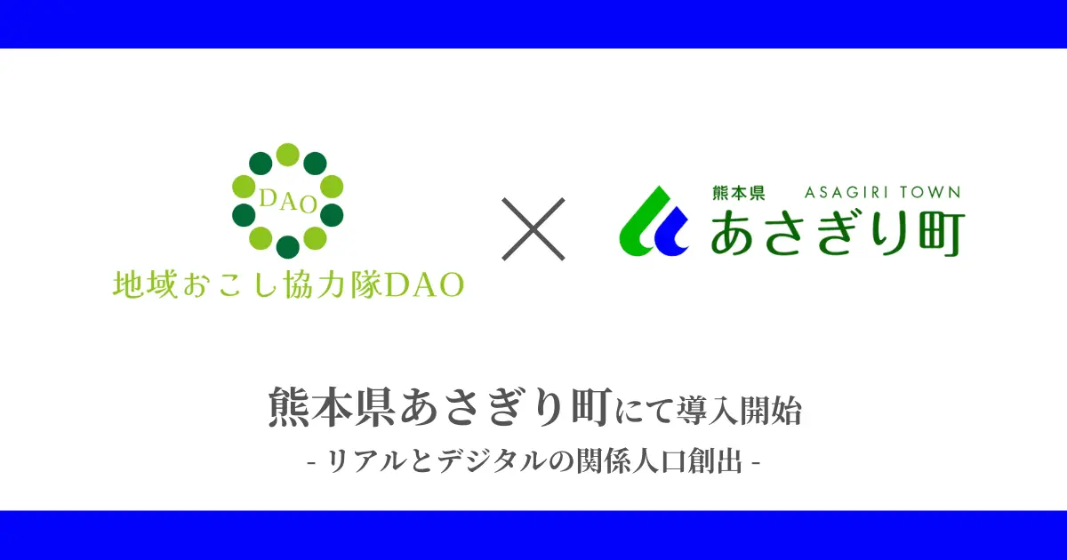 熊本県あさぎり町とDAOやNFTなどを活用し地方創生を手掛ける株式会社あるやうむ(本社:札幌市、代表取締役:畠中博晶)は2025年6月から、地域おこし協力隊とデジタルコミュニティ(DAO)を組み合わせて地域を活性化する「地域おこし協力隊DAO」の取り組みを九州で初めて実施します。テレワーク施設「ALOT」を活用し、リアルとデジタル両面からの関係人口創出とイノベーティブな地域課題の解決を目指します。※本取り組みはデジ田交付金での対応も可