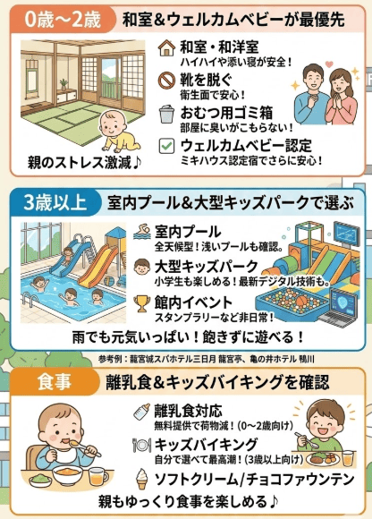 0歳〜2歳は「ウェルカムベビー認定」と「和室」を最優先