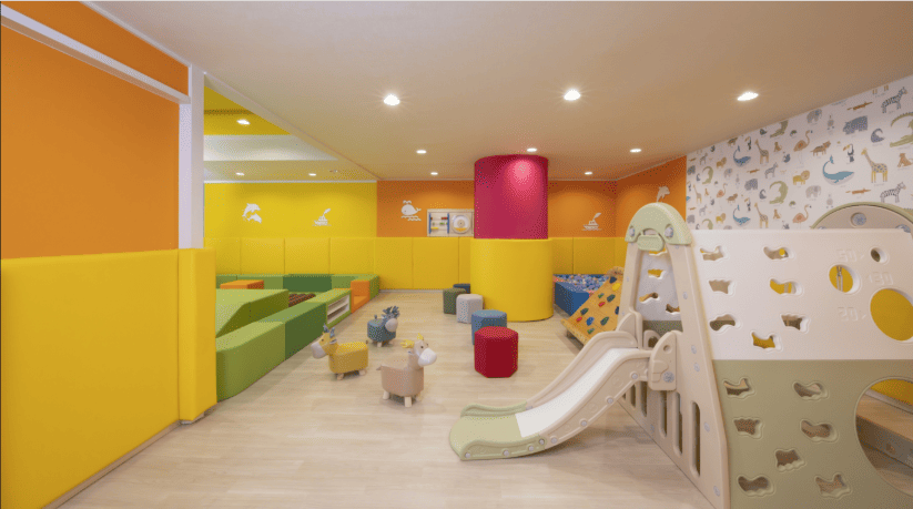 新設されたキッズルームは、63平米もの広さ!小さなお子様の安全性とパパ・ママの快適性を徹底的に追求した設計になっていますよ。