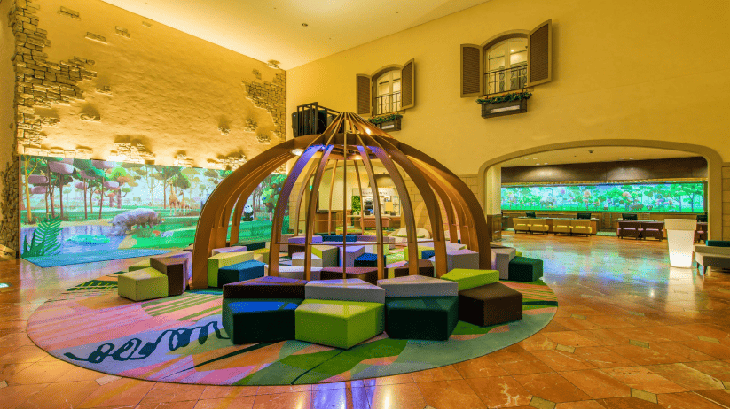 また、ホテルのロビーにはプロジェクションマッピングもあり、チェックイン時も子供を飽きさせることがありません。