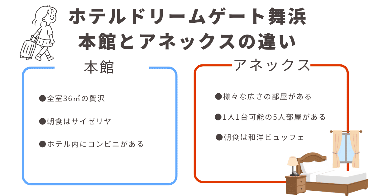 ホテルドリームゲート舞浜の本館とアネックスの決定的な違いを一目で確認できるよう、比較表を作成しました。