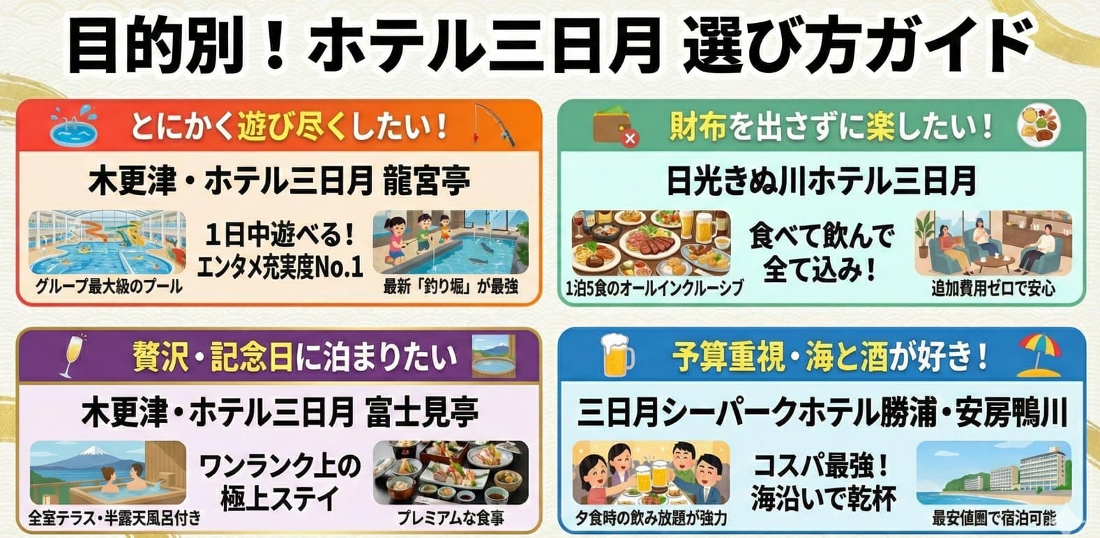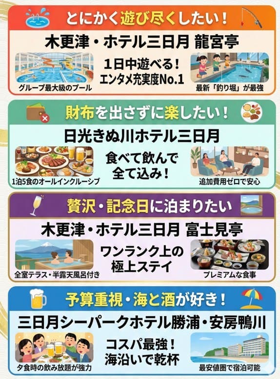 どのホテル三日月があなたの家族に最適か、迷いをゼロにするための具体的な判断基準をプロの視点で分かりやすく解説します。