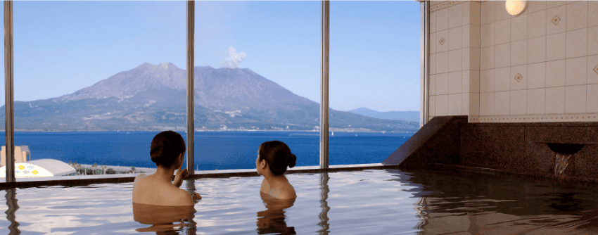 展望露天温泉「さつま乃湯」桜島と市街地を一望