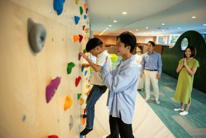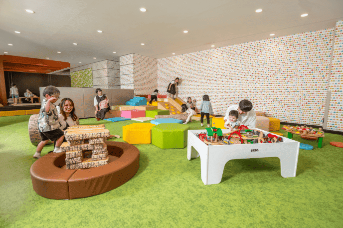ボルダリングや滑り台があるアクティブエリアから、おままごとができるごっこ遊びエリアまで揃っており、観光から戻ったあとも子供たちが飽きることはありません。