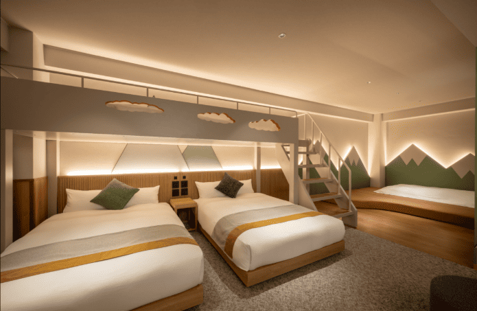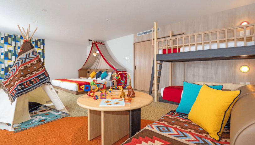 例えば、子供の背丈に合わせた洗面台や、キャンプ気分を味わえる二段ベッド付きの客室など、滞在そのものが一つの冒険になるような工夫が凝らされています。