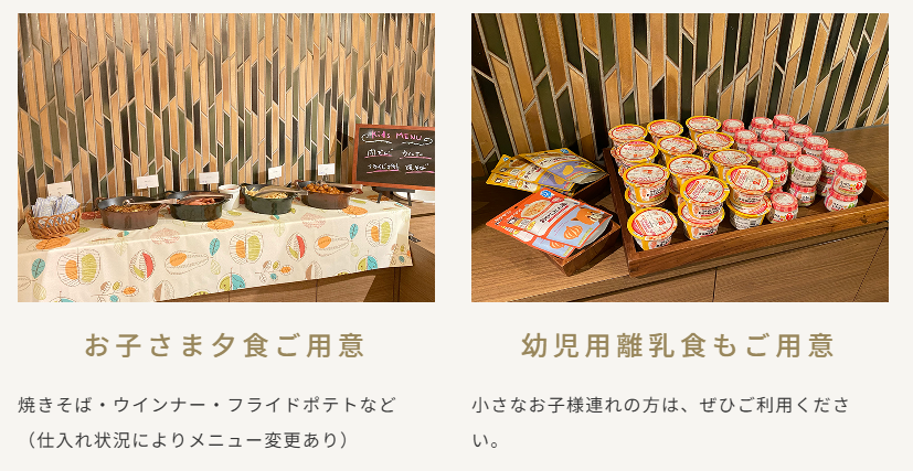 ビュッフェ会場には「月齢別離乳食」や「キッズバイキング」が完備されているため、0歳児連れの旅行デビューから、じいじ・ばあばとの三世代旅行まで、全員がストレスなく楽しめますよ。