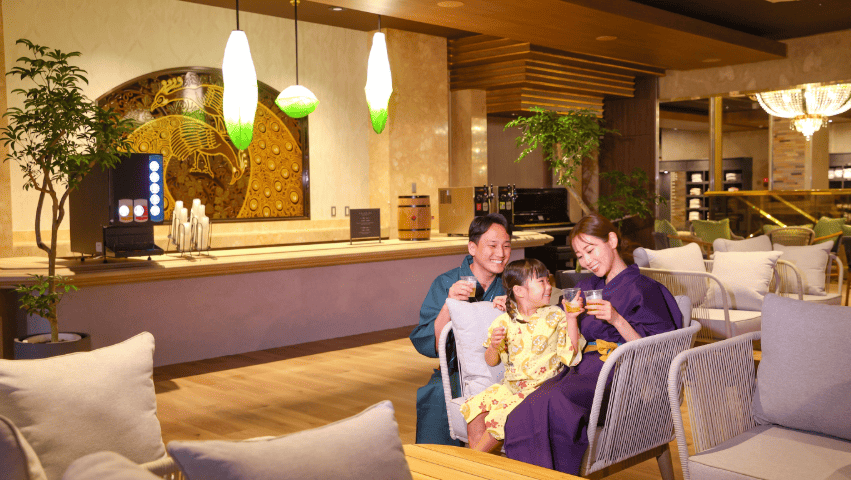 Premium 鬼怒川観光ホテルなら、到着した瞬間からプレミアムラウンジで冷えたビールを楽しみ、夜は三つ星バイキングで自分へのご褒美を。