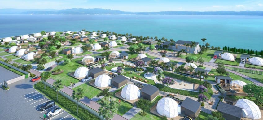 | ドーム型ホテル | 角がない不思議な空間。恐竜やスイカ柄の部屋も人気 |