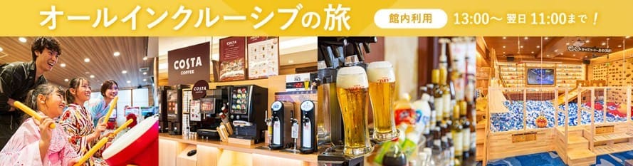 - オールインクルーシブ:夕食時の飲み物やラウンジでの飲食が追加料金なし。お財布を気にせず楽しめます。