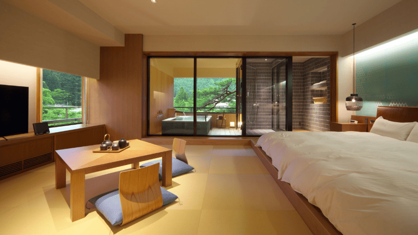 現代的な快適さを極めた佳松亭のラグジュアリー室