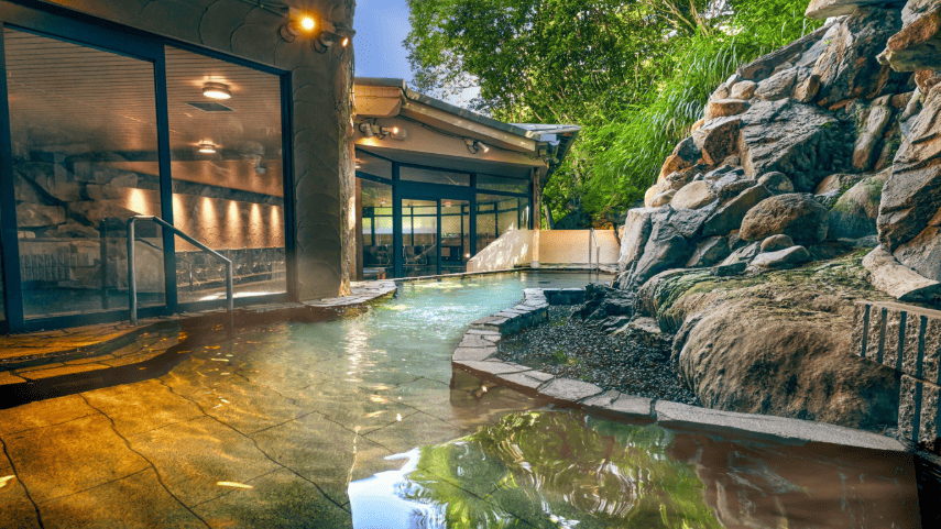 館内には無料で利用できる本格的な岩盤浴があり、温泉とはまた違ったデトックス体験が可能です。さらに屋外にはセラミック足湯も設置されており、庭園の景色を眺めながら、冬でもポカポカと温まることができます。