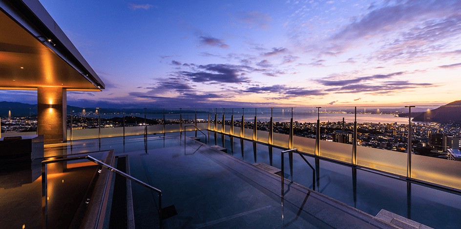 宙館の最上階(13階)にある「宙湯」は、別府の街並みと海を一望できる杉乃井ホテル自慢の温泉です。