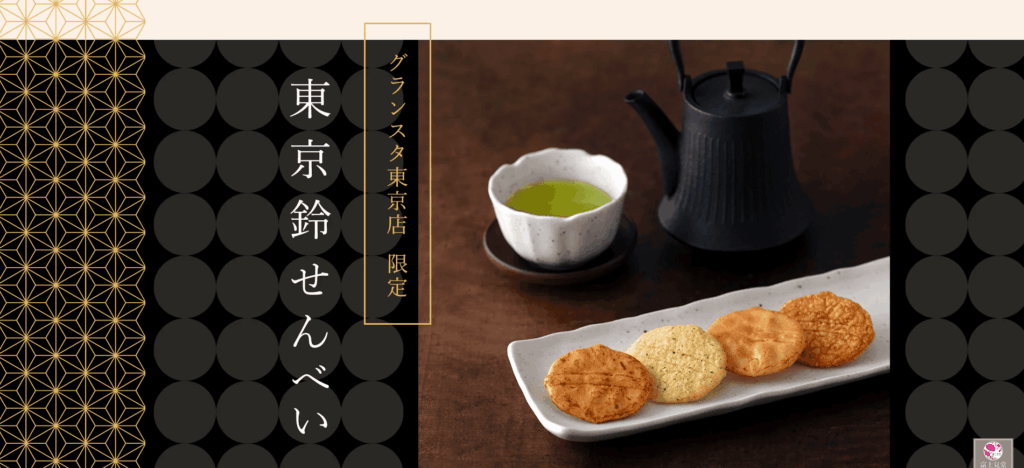 - 富士見堂「東京鈴せんべい」:銀の鈴をモチーフにした、お米の旨味が活きたおせんべい。