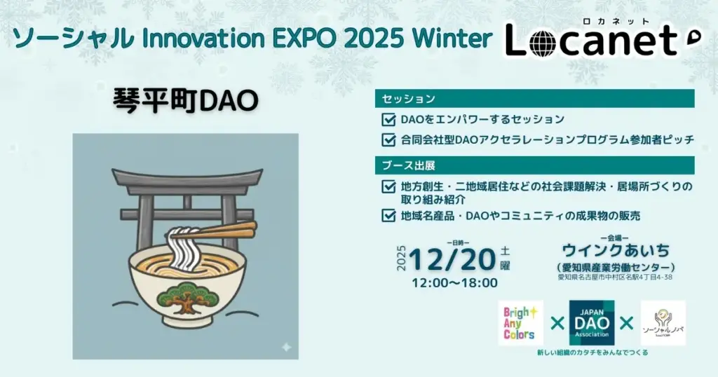 【琴平町】琴平町DAOが12/20(土)「ソーシャル Innovation EXPO 2025 Winter ~Locanet(ロカネット)~」に出展!