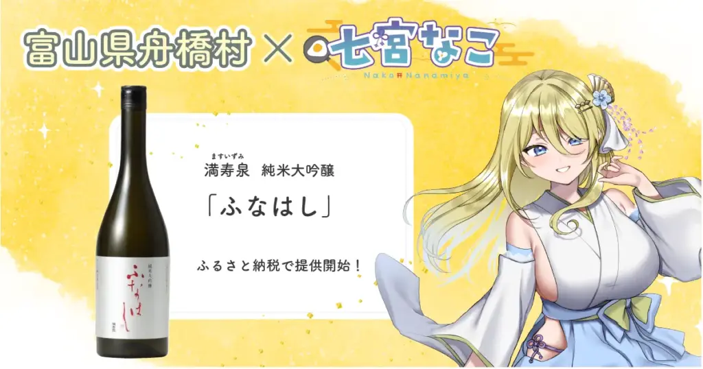 富山県舟橋村がVtuber 七宮なことコラボ!満寿泉 純米大吟醸「ふなはし」をふるさと納税の返礼品として提供します!