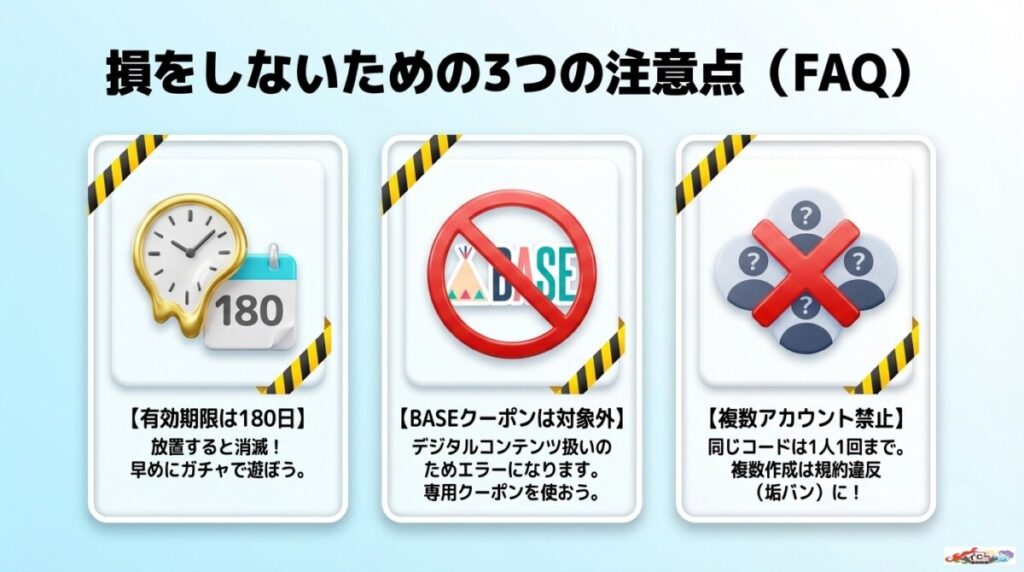 専用クーポンならエラーなくポイントが付与されるため、安心してお得にガチャを楽しめます。