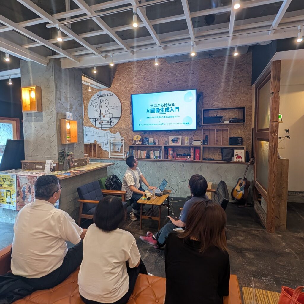 たとえば、セミナーで学んだ参加者が自分の店の案内文をAIで作り直したり、イベント告知の画像を自力で生成したりするケースが出てきています。「教わったから使ってみた」という循環が、セミナーの外でも回り始めています。