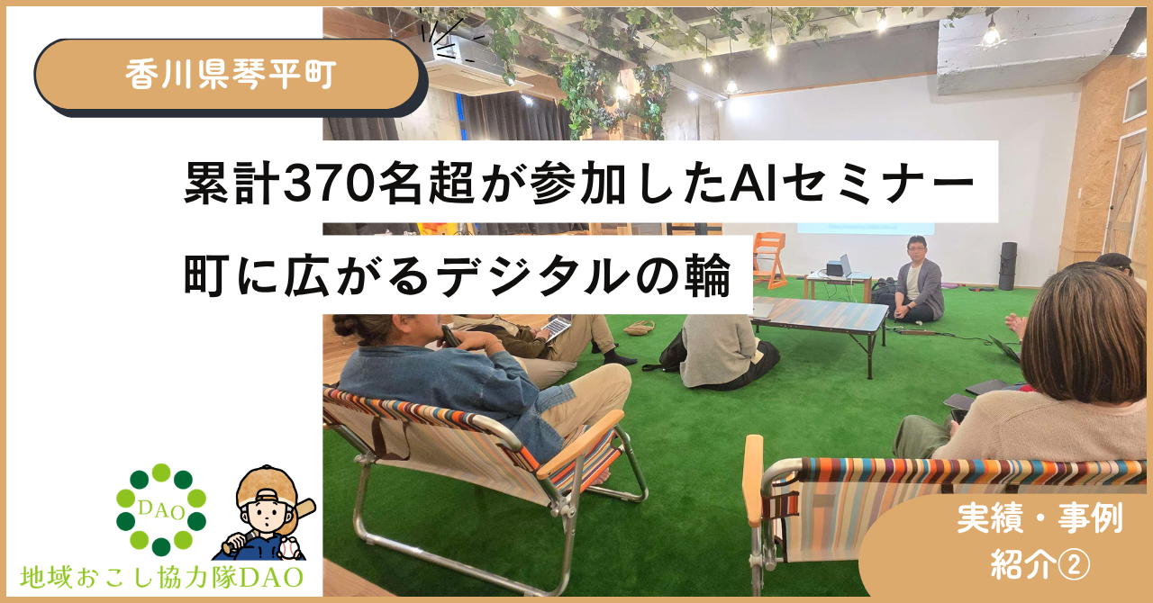 あっきーさん自身も、琴平町の役場でAIの活用法をアドバイスする機会が増えています。この話は第4回の記事で詳しくお伝えしますが、セミナーでの実践経験が行政の業務効率化にまでつながっている点は、地域おこし協力隊DAOの隊員ならではの波及効果といえるでしょう。