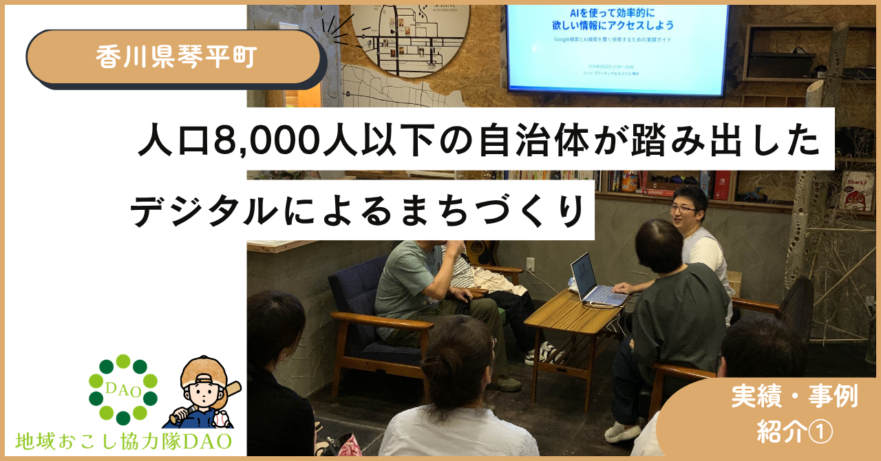 琴平町が目指しているのは、単に自分たちの町をデジタル化することだけではありません。小規模自治体だからこそできる先進的な取り組みを琴平町から始め、他の自治体にとっても参考になるモデルをつくること。そんなビジョンのもと、「地域おこし協力隊DAO」という形で動き出しました。