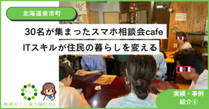 【余市町】人口1.7万人の町で30名が集まったスマホ相談会cafe|ITスキルが住民の暮らしを変える(実績・... 前回の記事では、hiroさんのネットワークから生まれた坂口恭平氏の展示&ライブイベントをご紹介しました。 今回は少し雰囲気の違う話です。国際的なDAO運営の経験を持...